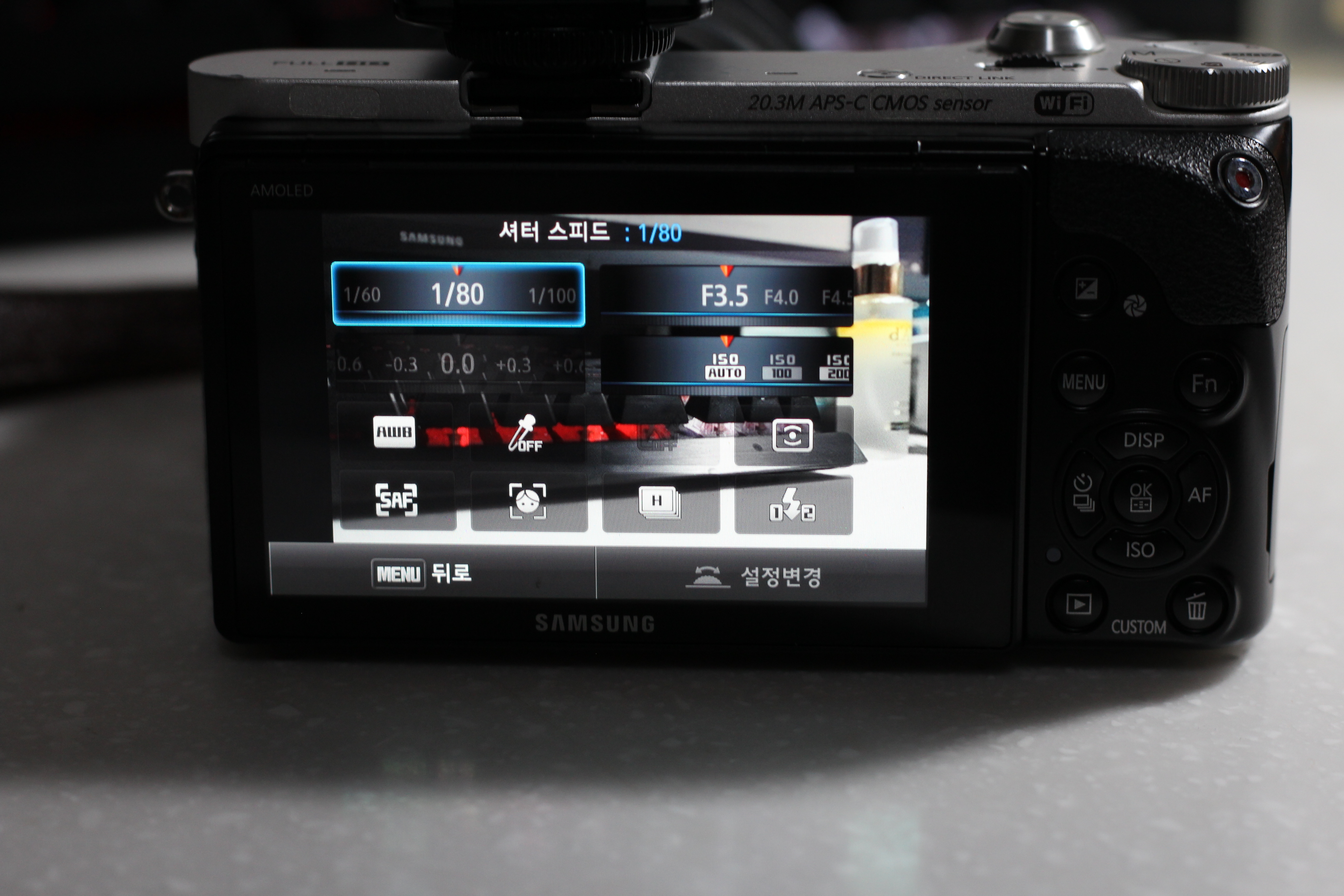 셔터 스피트 조리개 플래시 등을 설정할 수 있게끔 뜬다.