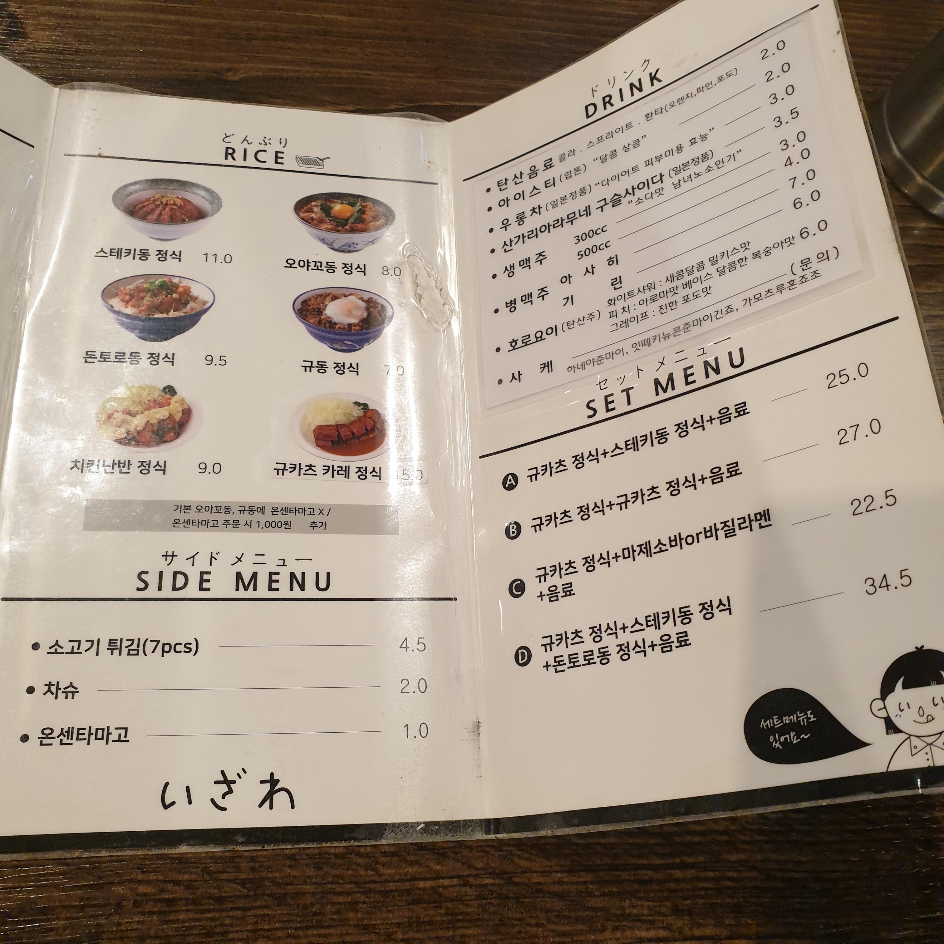 왕십리 맛집 추천, 이자와 맛집, 2호선 맛집 추천, 메뉴판