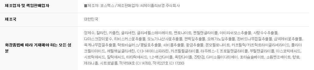 참고로 성분표를 첨부한다.